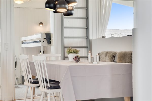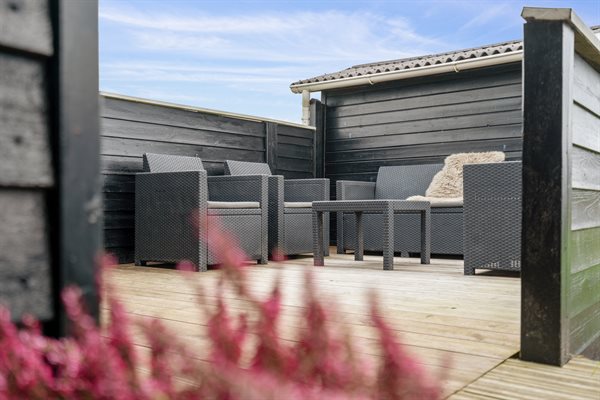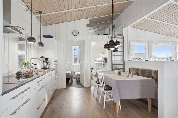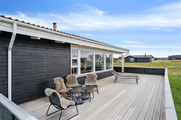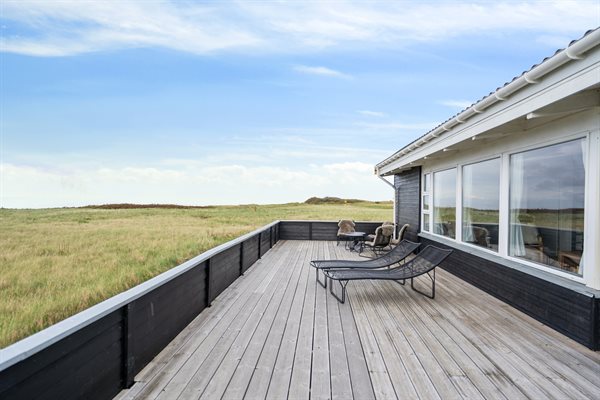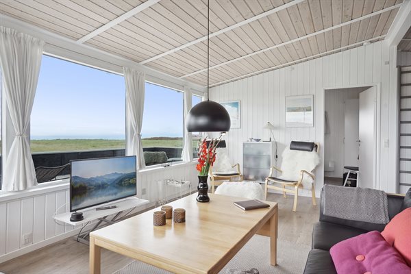 Dejligt sommerhus beliggende i 1. række ud mod de stejle skrænter ved Vesterhavet og med udsigt til Rubjerg Knude fra grunden. Fra såvel hus som terrasse er der en enestående havudsigt, og solnedgangen kan således nydes herfra. Stort set fra hver m2 er der udsigt enten til havet, byen eller kirkerne. Huset er bygget op omkring stue og køkken/alrum som et samlingspunkt for huset. Herfra er der adgang til 2 hemse, som emmer af hygge og hulebygning men alligevel med skønt lysindfald. Stuen afskærmes med en halvmur fra spiseplads/køkken. Huset har gode træterrasser med delvis overdækning flere steder og med mulighed for at flytte sig i forhold til vind og sol. Der er loungemøbler til 8 personer og 2 sæt havemøbler med spiseplads. Med husets centrale beliggenhed er indkøb, restauranter og det skønne kulturliv i Lønstrup indenfor gåafstand.