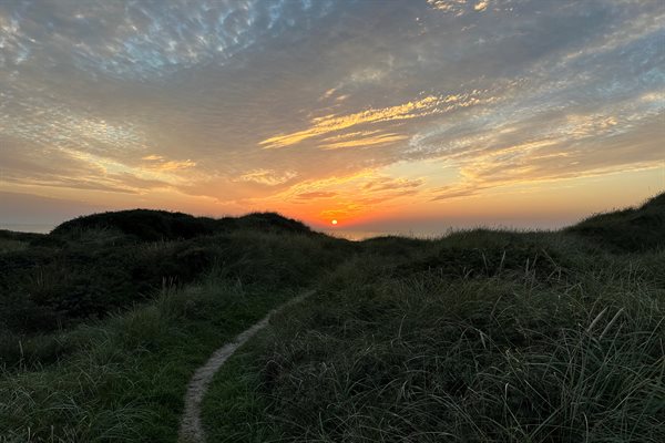 Udendørs venter store, solrige terrasser på begge sider af huset. Her kan I nyde dagens måltider, lytte til havets brusen og opleve de betagende solnedgange over Vesterhavet – en oplevelse, man aldrig bliver træt af.