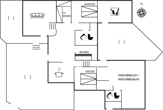 Aktivitetsrum med bordtennis – ideelt til både familieferier og ophold med venner. Brændeovnen i stuen skaber en hyggelig stemning på kølige aftener.