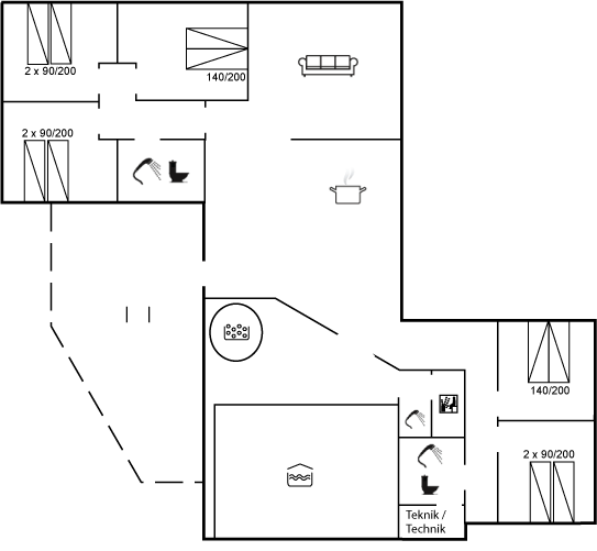 • 14 personer   • Husareal er 197 m2   • Bygget i 1990  • 5 soveværelser   • 2 husdyr tilladt
