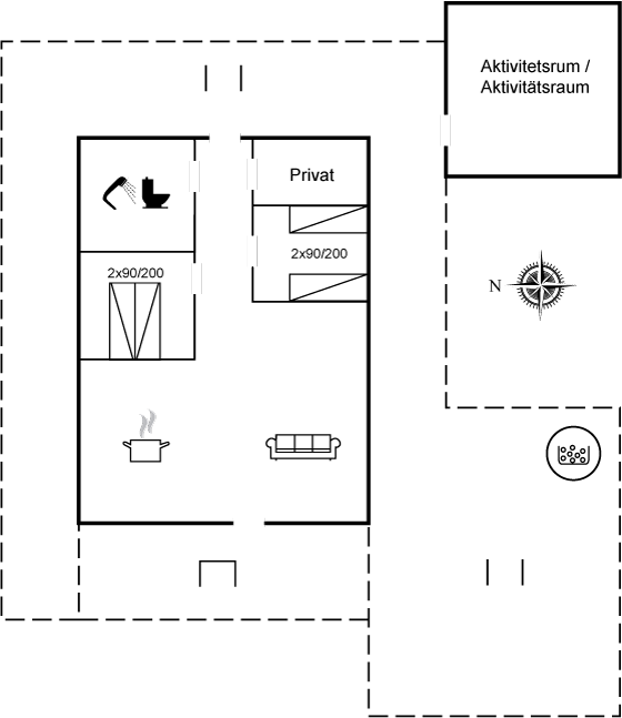 Et hyggeligt sommerhus på Fanø med dejligt køkken-alrum, hvorfra der er direkte adgang til den delvist overdækkede terrasse, hvor der er god plads. Huset er delvist renoveret i 2025 og der findes et helt nyt og skønt badeværelse. I forbindelse med den store terrasse findes der et separat aktivitetsrum samt adgang til ude-spa og udendørs bruser.