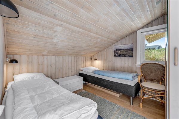 Sovepladserne er fordelt på 3 soveværelser: 1 soveplads i en dobbeltseng og 3 sovepladser i enkeltsenge. Gulvvarme i badeværelse, toilet og et af soveværelserne.