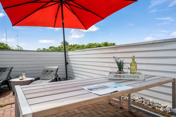Et velholdt feriehus med uforstyrrede terrasseområder i hjertet af Rindby, meget tæt på strand og indkøbsmuligheder.