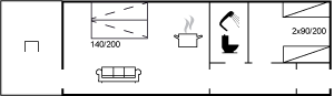 • 4 personer   • Husareal er 44 m2   • Bygget i 1974  • 1 soveværelser   • Husdyr ikke tilladt
