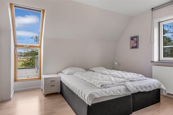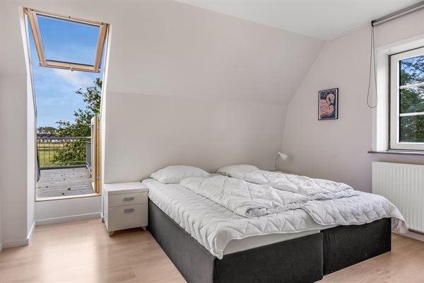 På førstesalen ligger tre soveværelser samt endnu et badeværelse med både badekar og bruseniche. Fra det ene soveværelse er der udgang til en stor tagterrasse. Der er desuden adgang til en rummelig hems med eget fjernsyn. Størstedelen af husets rum har en skøn udsigt over Vadehavet.