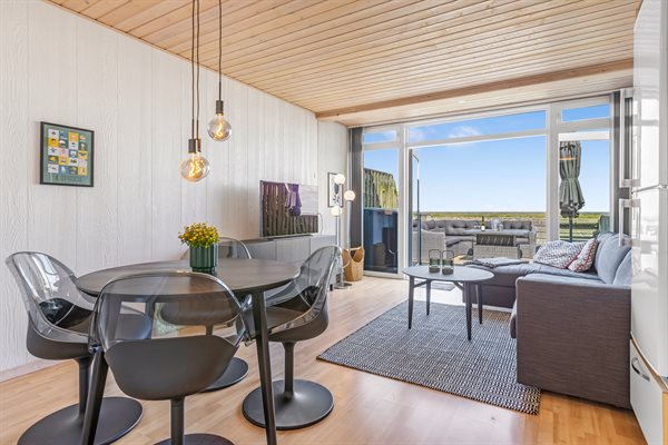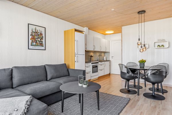 I denne flotte lejlighed har du udsigt over vandet fra terrassen og fra stuen. Her er du tæt på indkøb og diverse forretninger.