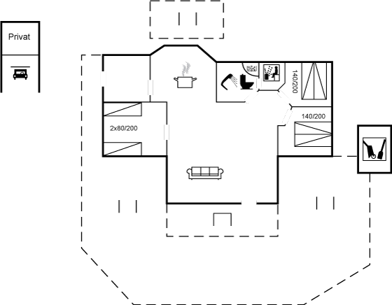 Med sine 98 m² er huset ideelt til op til seks voksne. Her får du både komfort og hygge med faciliteter som sauna, spabad og brændeovn – perfekt til afslapning, også når vejret viser sig fra sin kolde side.
