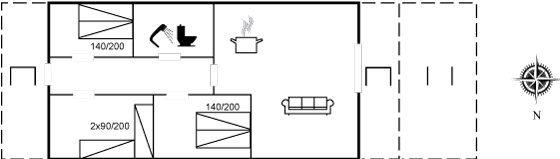 Der er i alt 3 soveværelser. Sovepladserne fordeler sig på: 4 sovepladser i dobbeltsenge. 2 sovepladser i enkeltsenge.