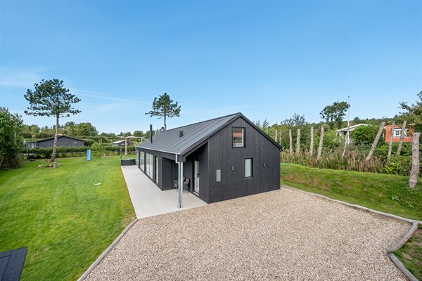 I området Toftum Bjerge finder man dette dejlige og nybyggede sommerhus fra 2021. Huset er stilfuldt indrettet med kvalitetsmøbler og har en behagelig og gennemført stil. Der er adgang til hems med 2 mulige sovepladser. Nyd aftnerne på den overdækkede terrasse og lad ungerne lege på grundens legeplads. Skal hele familien luftes giver området rig mulighed for, at man kan gå ned til fjorden. Er man mere til shopping, kan man tage til Struer, som også byder på kultur og lækre madoplevelser.