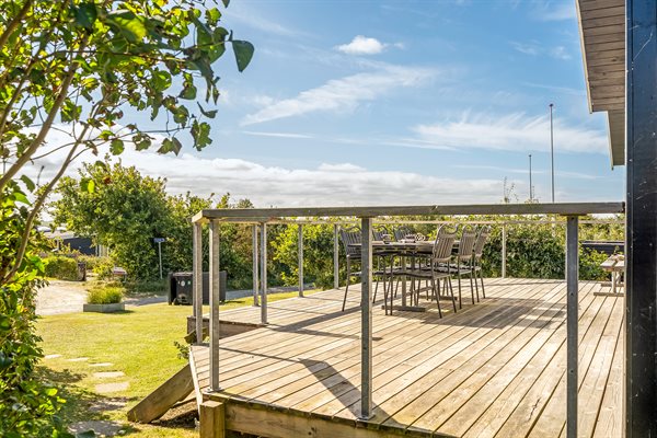 Højt beliggende på 702 m2 kuperet grund i Toftum Bjerge ligger dette charmerende fritidshus. Med skøn udsigt til Limfjorden fremstår huset i bedste fritidshusstil. Udsigten er særlig smuk fra den hævede sydvendte træterrasse, og bag huset kan man sidde fuldstændig ugeneret på en skøn delvis overdækket fliseterrasse. Der er overvejende anlagt græsplæne i den kuperede have med omkransende tæt beplantning. Toftum Bjerge er et naturskønt Camping- og fritidshusområde med karakteristiske klinter ud til fjorden. Ideelt for bl.a. paraglidere og udsigten er langstrakt - f.eks. til Oddesundbroen, hvorfra der er en del lystfiskeri.