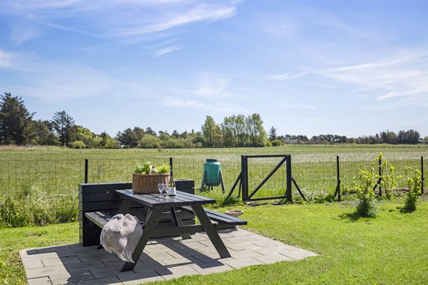 I udkanten af et fredeligt sommerhusområde, kun 400 meter fra en dejlig og børnevenlig badestrand, finder du dette skønne og velholdte sommerhus. Huset ligger på en delvist lukket naturgrund med flot udsigt over åbne marker, der strækker sig helt hen til klitterne – her er der masser af ro, luft og feriestemning.