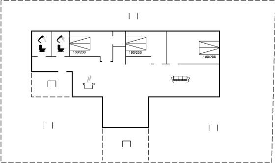 Udendørs findes der en imponerende og delvist overdækket terrasse, der går hele vejen rundt om huset. Her findes der solvogne, som er perfekte til afslappende timer og der findes ydermere et vildmarkskar, hvor I kan nyde varme bade under åben himmel.