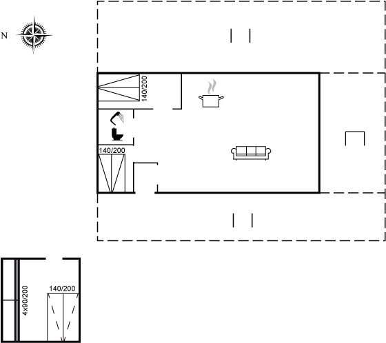 Der er også et tilhørende anneks med 2 køjesenge, som giver i alt 4 sovepladser, samt en dobbelt sovesofa. Perfekt til større familier eller grupper, der ønsker lidt ekstra plads.