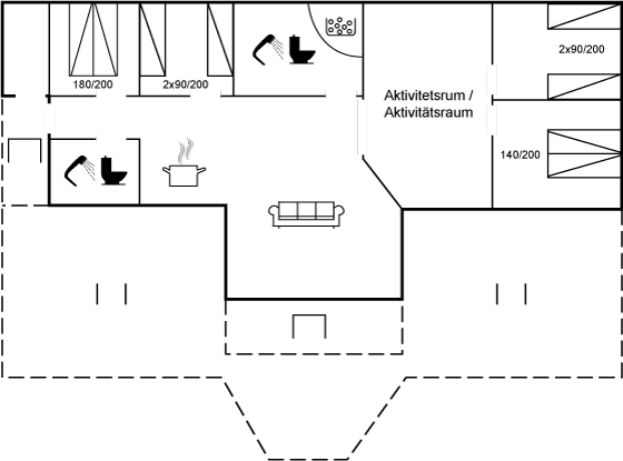 Velkommen til dette skønne wellness- og aktivitetshus, der kan danne den perfekte ramme om både afslapning og hygge. Til huset hører én stor, solrig terrasse samt én overdækket terrasse, så der altid er mulighed for at nyde udelivet – uanset vejr og vind.