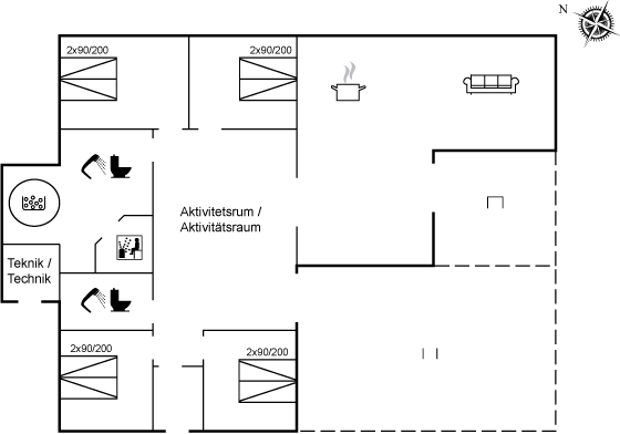Et eksklusivt og rummeligt sommerhus beliggende på en delvis kuperet grund lige ved en børnevenlig badestrand. På grunden findes der en separat bygning med swimmingpool, dampkabine og badeværelse med bruseniche. Denne bygning opvarmes med en luft-til-vand varmepumpe. Bemærk: Huset er indrettet med 2 hemse, hvor 2 af sovepladserne befinder sig på den ene.