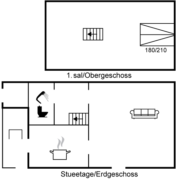 Obs! trappen til hems er stejl. Huset er kun opvarmet af fjernvarme - med gulvvarme i køkken og på badeværelse.