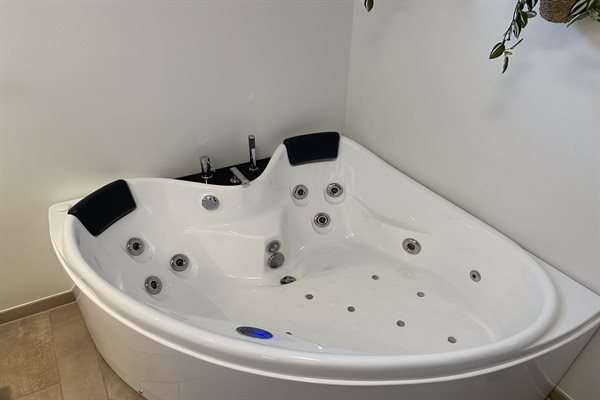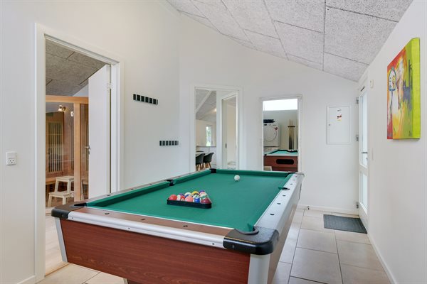 Dette flotte sommerhus med spa og aktivitetsrum er beliggende ca. 500 meter fra vandet - på en stor grund med god plads til udendørs aktiviteter.