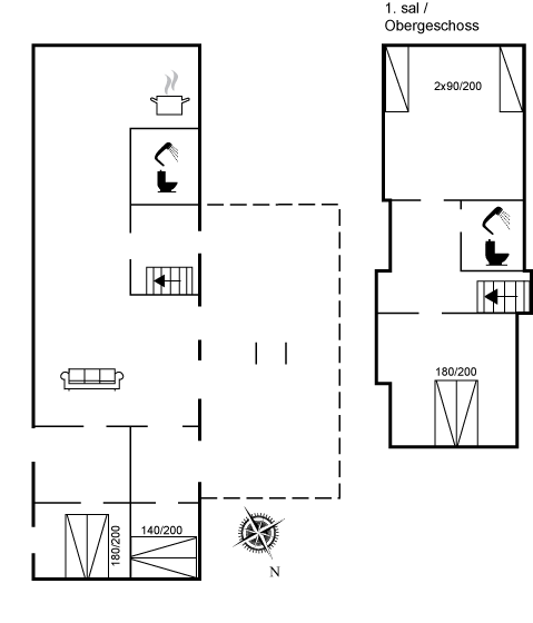 I dette sjældne sommerhus kan du bo helt lokalt i Danmarks eneste klippeby. Huset er kærligt indrettet og møbleret meget personligt - med skønne patinerede og sjove kuriøse fund. Stilen er nordisk/boheme og gennemført over hele linjen. Nyt velassorteret åbent køkken med god plads. Stuen er lys og indbydende med et dejligt opholdsområde med brændeovn og tv, som er åbent til forlængelse af spiseområdet. Fra køkken-alrum er der udgang ad 3 franske døre til romantisk brolagt og smukt beplantet gårdhave. På førstesalen er der to soveværelser, walk-in garderobe og toilet. Her er interiøret og indretningen skabt i respekt for husets alder og spændende historie. Det emmer simpelthen af miljø. Maleren Richard Mortensen har bla. boet på kvistværelset ovenpå, når han var i Gudhjem.