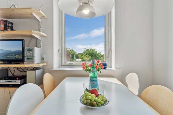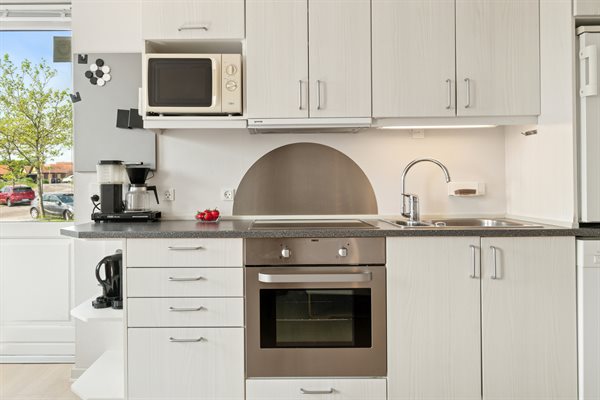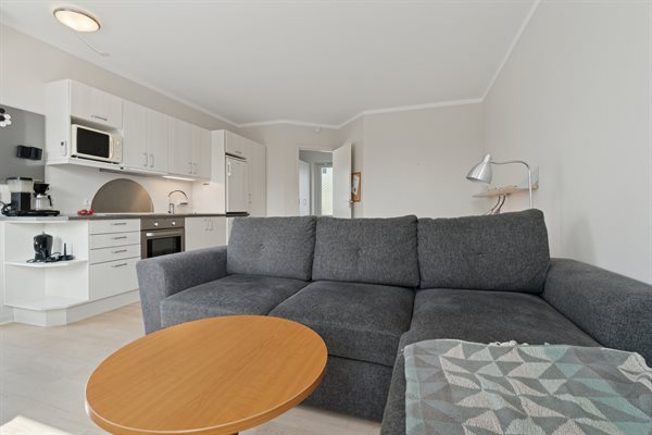 Ferielejlighed i det hyggelige feriekompleks Mølleparken i Gudhjems udkant. Lejligheden ligger i stueplan med egen, mindre terrasse ud mod vejen og Gudhjem Svømmehal, der nok kan friste en tur, hvis havet er for køligt. Ferieboligen, der har en lys stue med spise- og hyggeafdeling samt stor dobbeltseng, er ideel for et par på oplevelsestur på Bornholm. Der er også en god køkkenafdeling og et fint badeværelse. At opleve sommerens mange mennesker, der besøger Gudhjem og den stejle butiksgade Brøddegade, er absolut anbefalelsesværdigt, men det er også dejligt at kunne trække sig tilbage i lidt mere fredelige omgivelser. Det store fællesområde med let kuperede plæner, lidt klippefremspring og lækroge virker indbydende, når man skal finde freden efter en hektisk feriedag med alle Gudhjems seværdigheder og massive klippeplateauer.