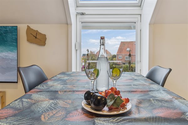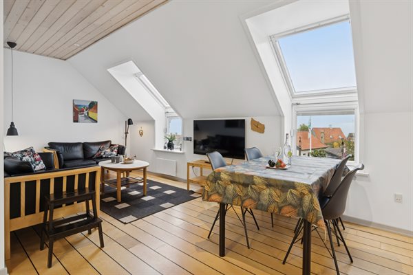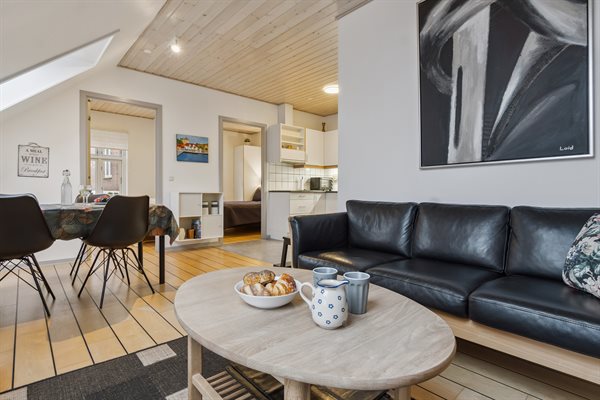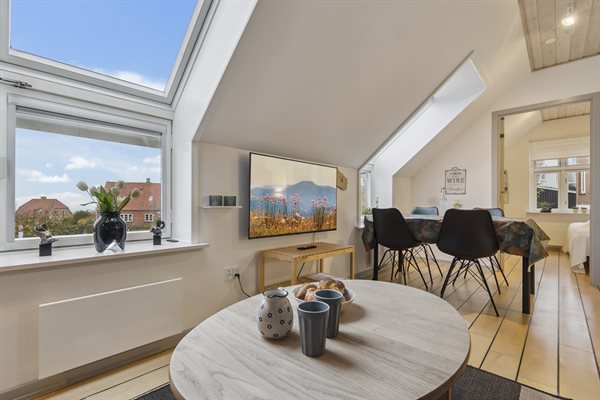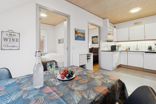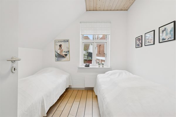 Højt beliggende ferielejlighed med fin udsigt ud over byen og Østersøen - både fra stue og den store fælles terrasse. Lejligheden er fint indrettet med 2 soveværelser, velfungerende badeværelse, lys stue og god køkkenafdeling. Hyggelig møblering, så man fornemmer den gode feriestemning, når man træder ind i lejligheheden. Gudhjem Købandsgård er indrettet med flere lejligheder i 1. sals højde omkransende en flot træterrasse med små afdelinger til hver lejlighed. Adgangen sker via fælles trappe med indgang til terrassearealet. I Købmandsgårdens centrale del i den store flisebelagte og ugenerede gård er der adgang til fælles swimmingppol, der kan benyttes fra den 1.6 og frem til den 30.9. Poolen er ikke opvarmet, men absolut klar til en frisk morgendukkert og børnenes vandlege i højsæsonen. Lejligheden ligger centralt i Gudhjem, hvor den kuperede Brøddegade fører ned til Gudhjem havn, hvor fra færgen til Christians Ø sejler dagligt. Mange spisesteder, supermarked og et væld af små butikker. Klippekysten byder på små idylliske vige og forrevne klippepartier, så man virkelig får fornemmelsen af noget sydlandsk, når ferien går til Gudhjem.