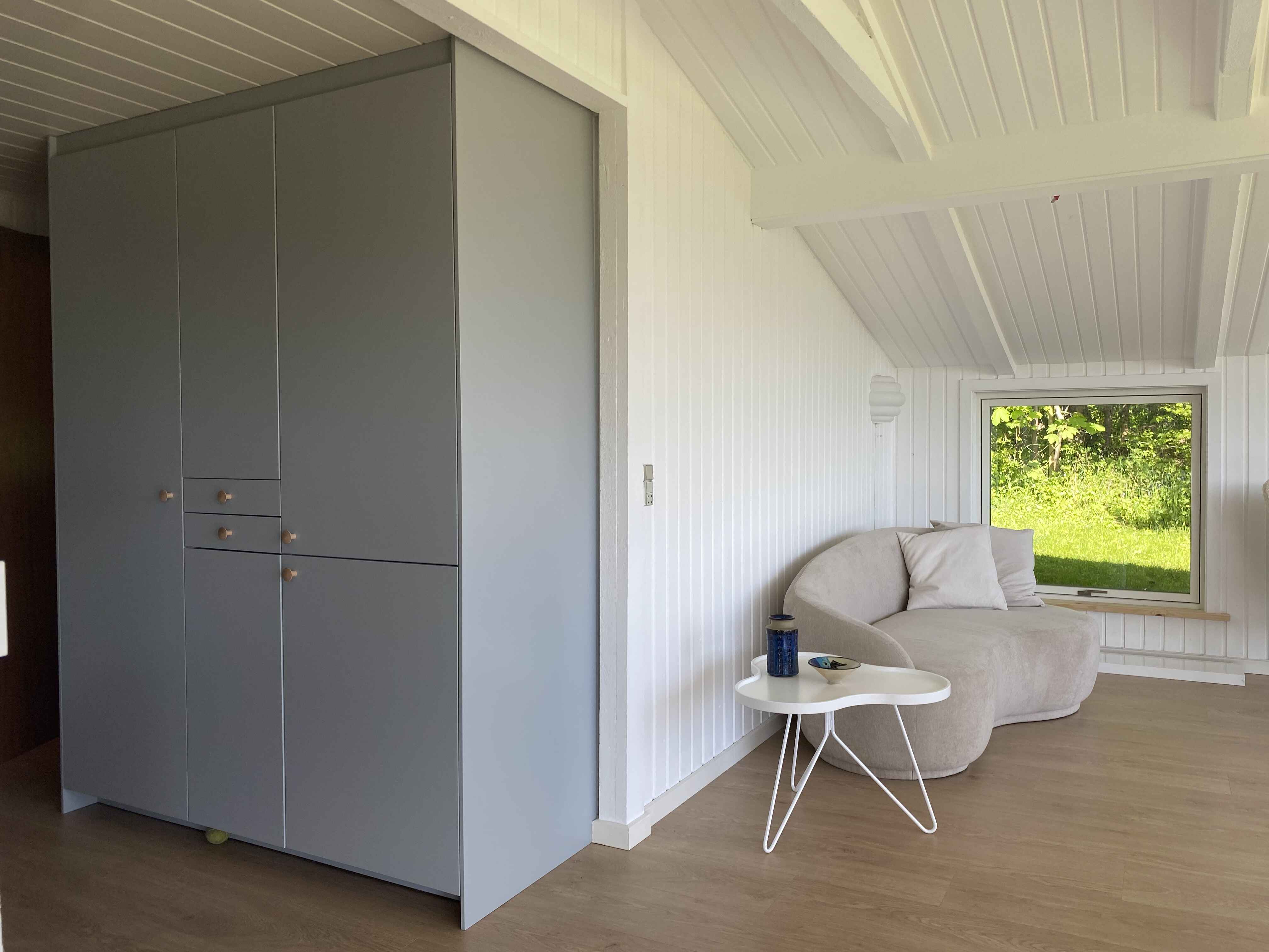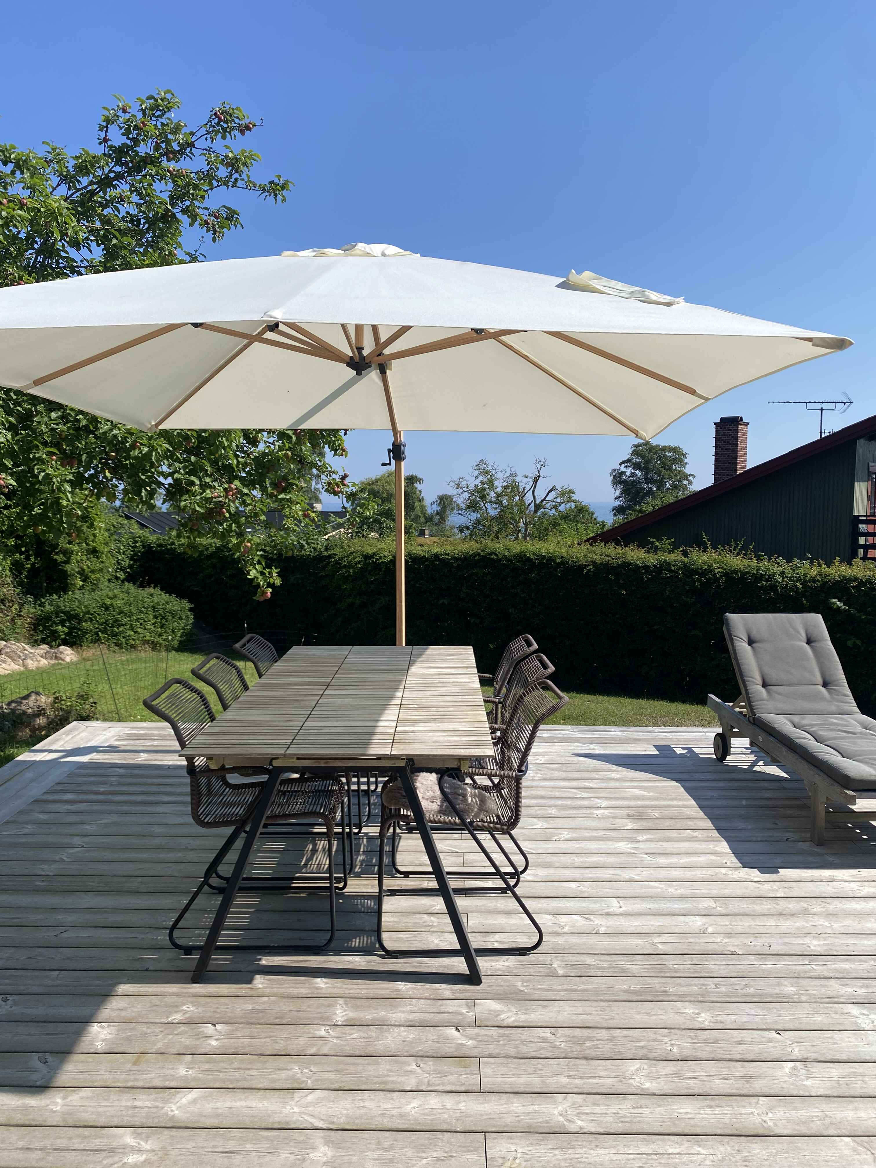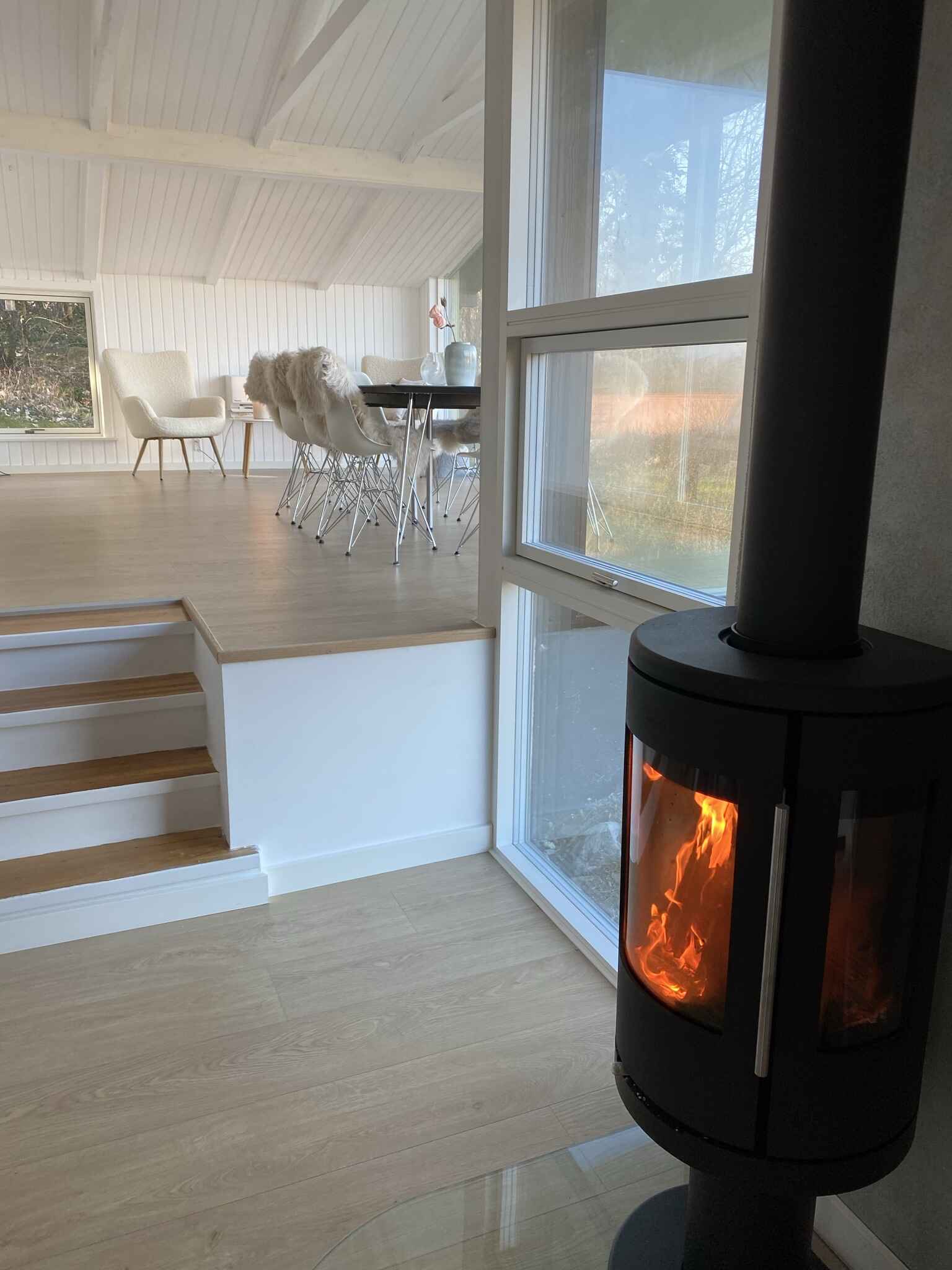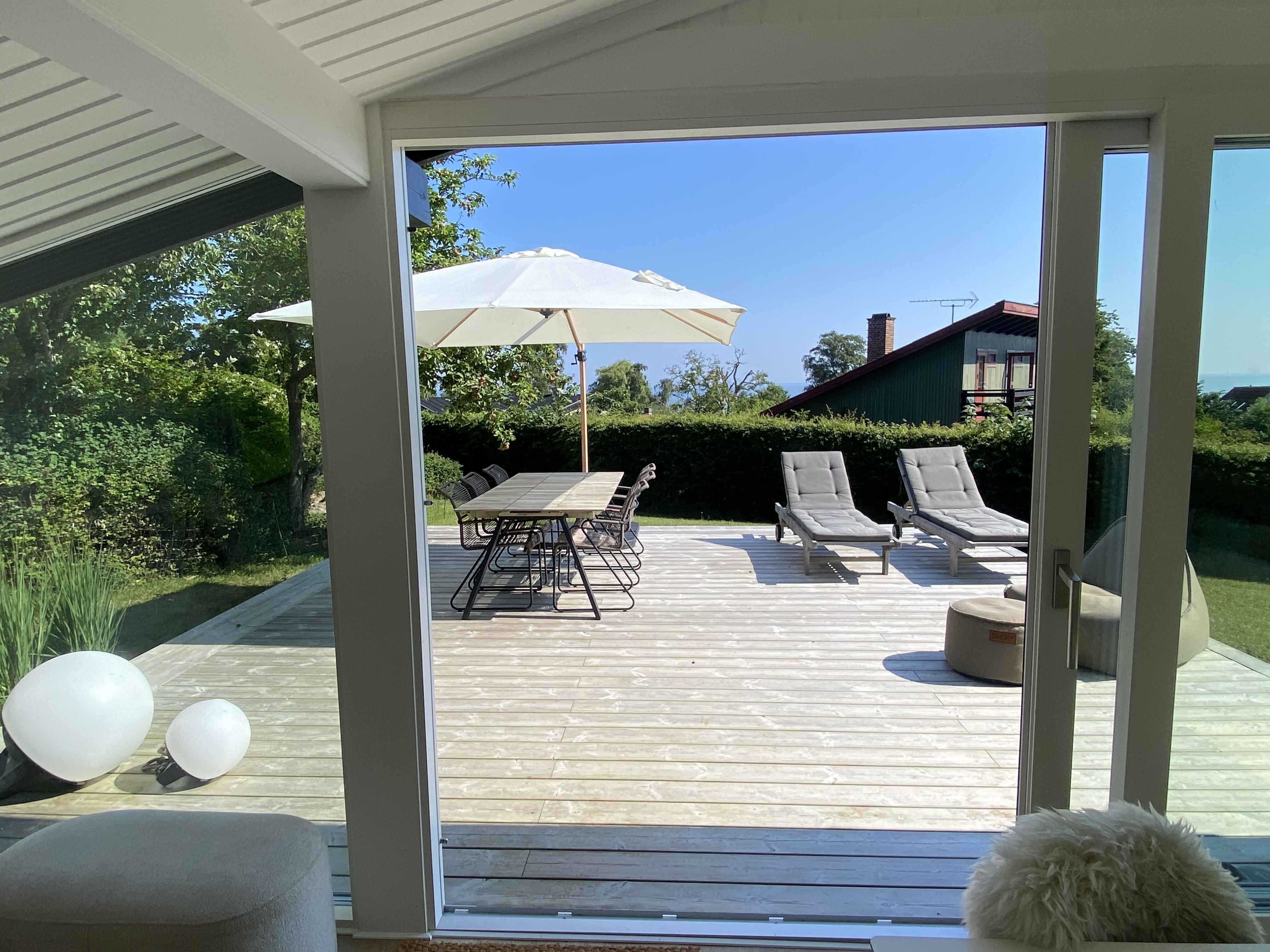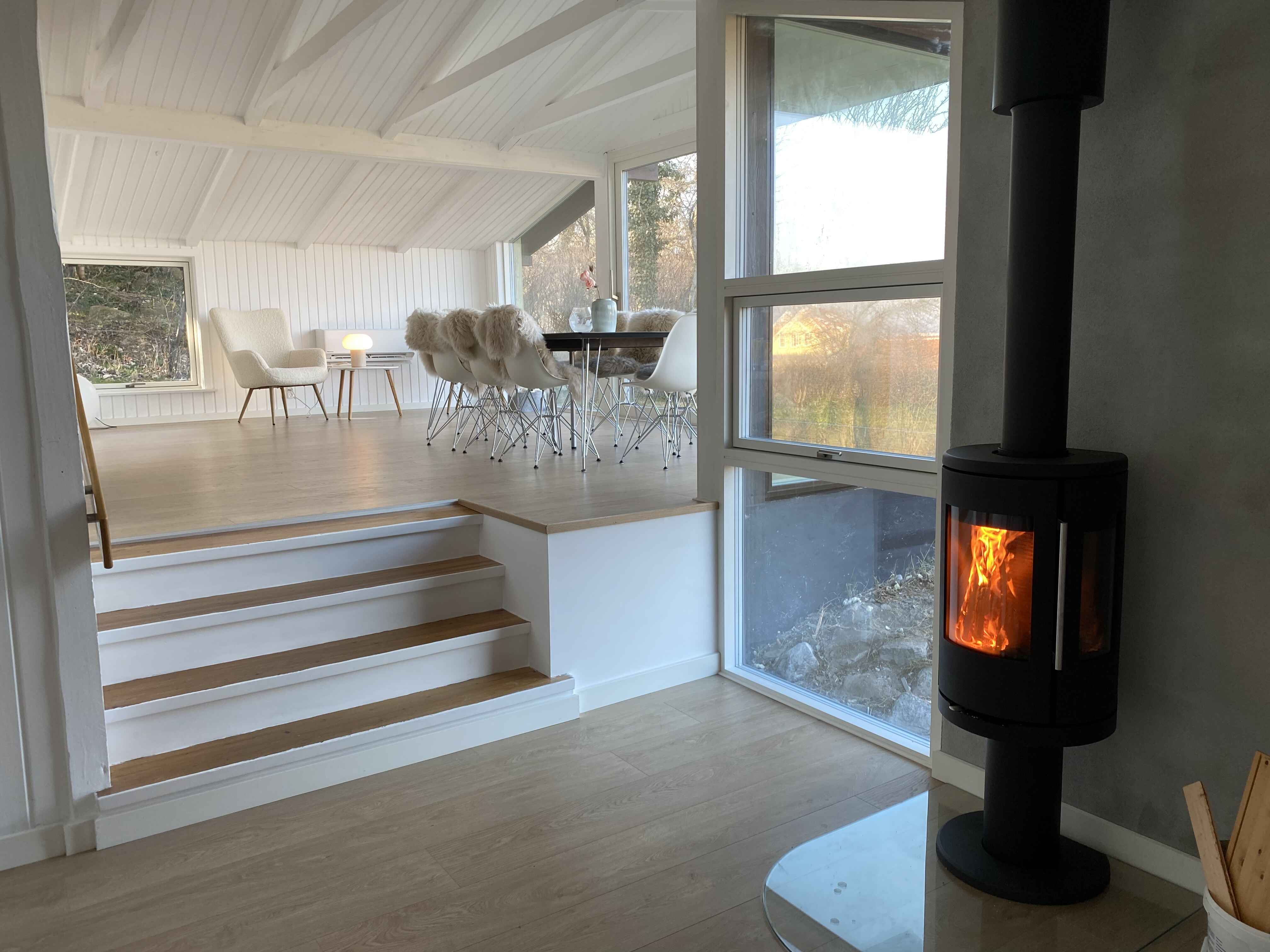Vi er 3. generationsejere af sommerhuset og har i 2022 fået det moderniseret og renoveret med materialer og møbler af høj kvalitet, så det står skarpt i forhold til at danne rammen for det dejligste ferieophold på Bornholm for både jer og vores egen familie. Især vil vi fremhæve de 2 dejlige opholdstuer i forskudt plan, hvor der kan slappes af i en af sofaerne eller omkring bordet med spil, hygge og god mad. Herfra er der udgang til en stor ny terrasse møbleret med bord og stole, parasol og 2 liggestole med hynder.