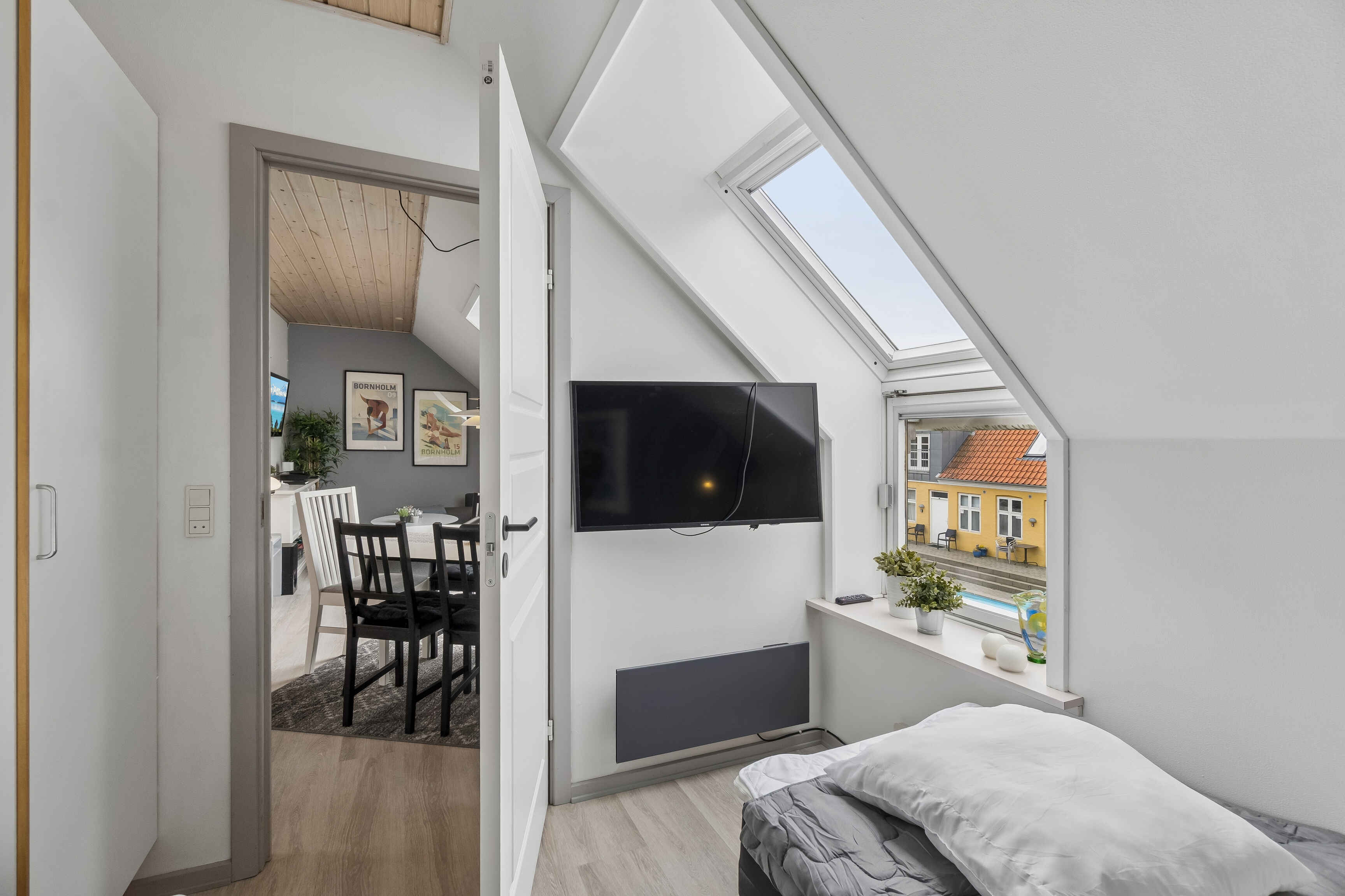 Denne charmerende lejlighed er det perfekte udgangspunkt for at udforske dejlige Bornholm og tilbringe en skøn og afslappende ferie ved vandet. Med andre ord en herlig base til jeres Bornholm-ferie, helt centralt i smukke Gudhjem.