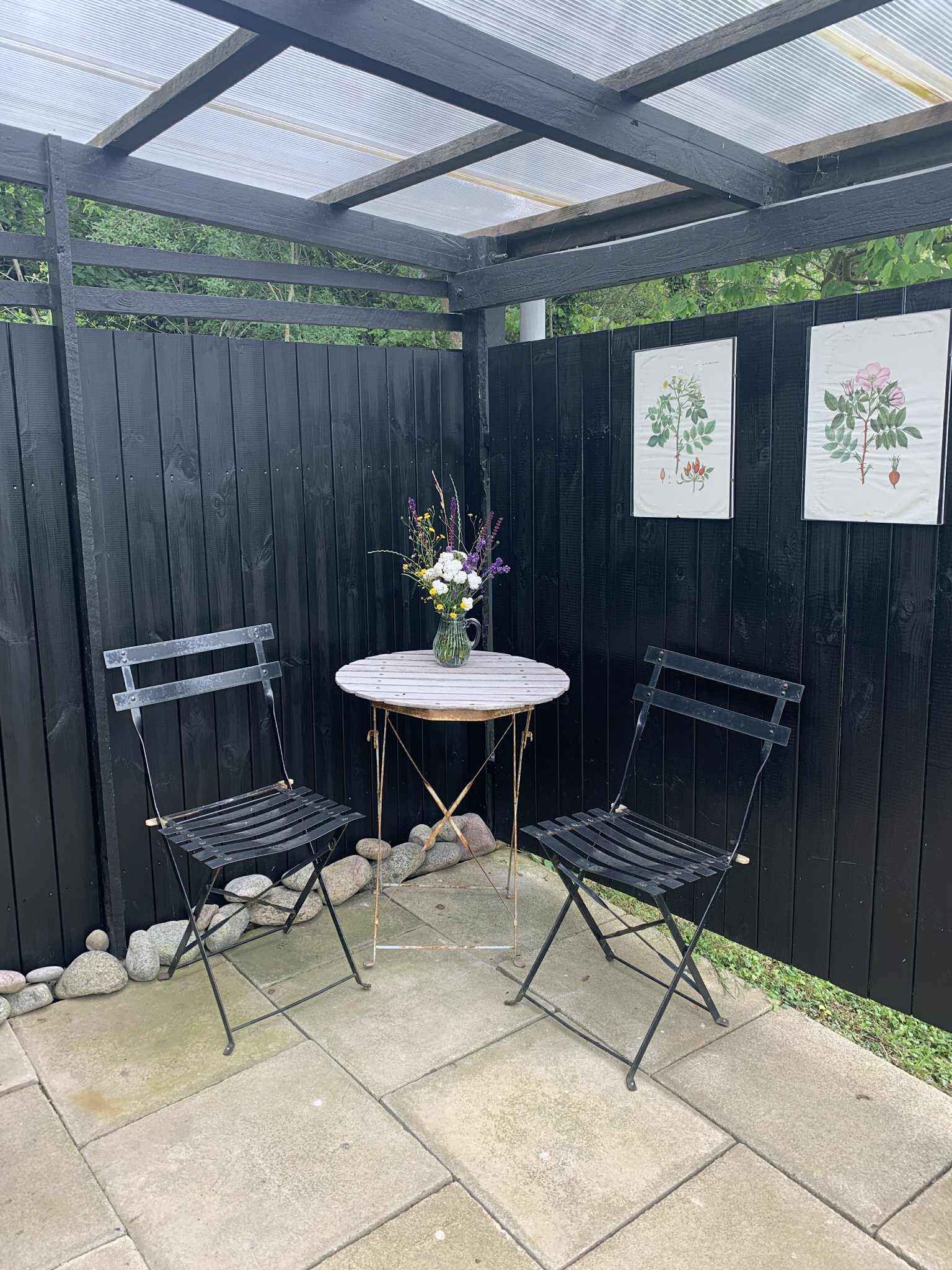 Fra terrassen er der udsigt mod Østersøen og Nordbornholms markante klippelandskab ved Hammerknuden. Her kan dagen starte stille med morgenkaffe og afsluttes med udsyn over havet og det skiftende lys.
