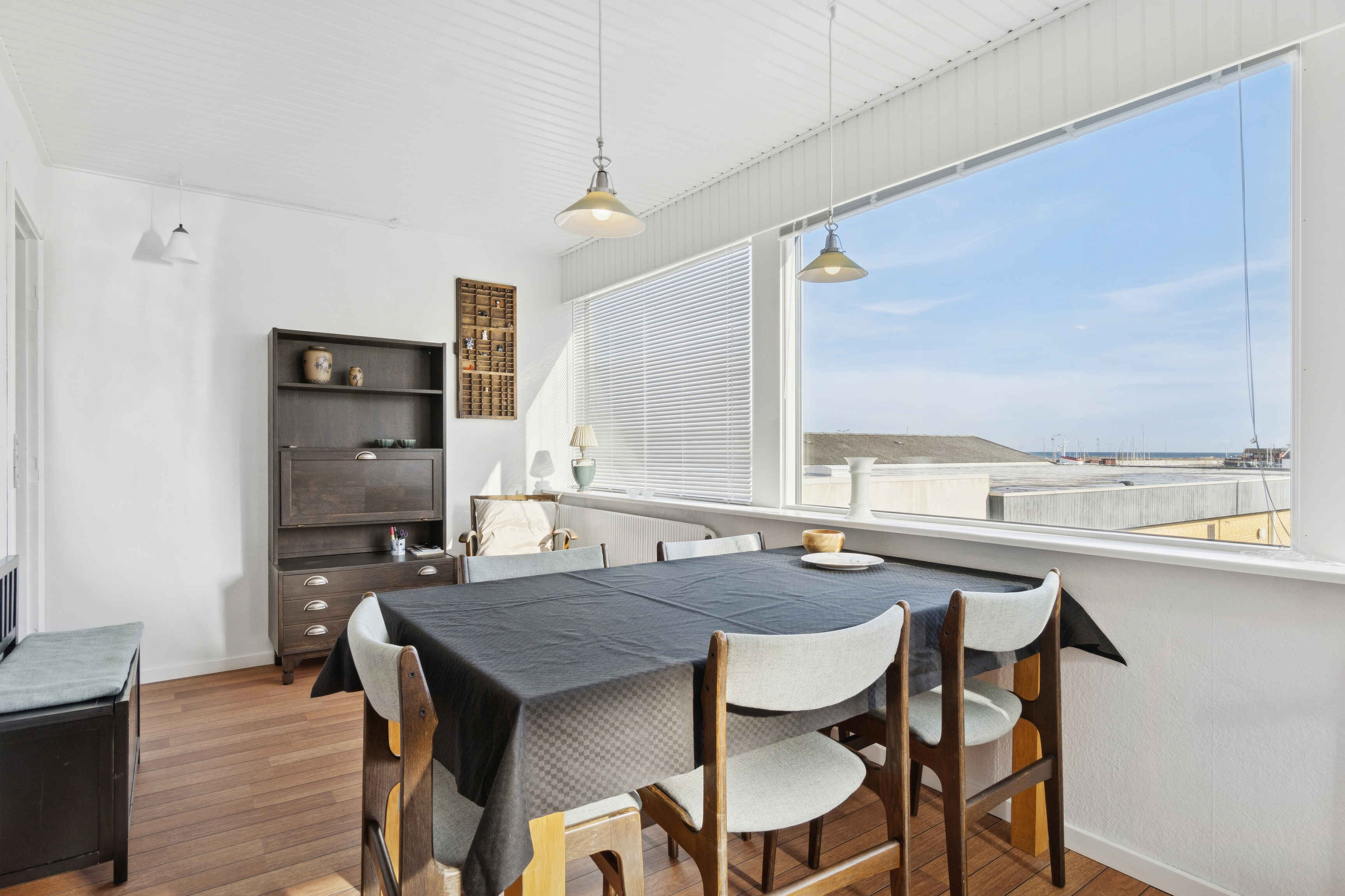 Dette byhus på 109 m² ligger tæt på både havn og kyst og har udsigt til havet fra første sal. Huset rummer tre soveværelser og i alt fem sovepladser, hvilket gør det velegnet til både par og familier.